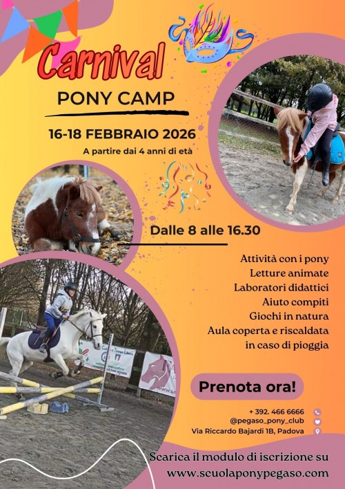 A grande richiesta, tornano i Carnival Pony Camp per bambini e ragazzi a partire dai 4 anni di età!